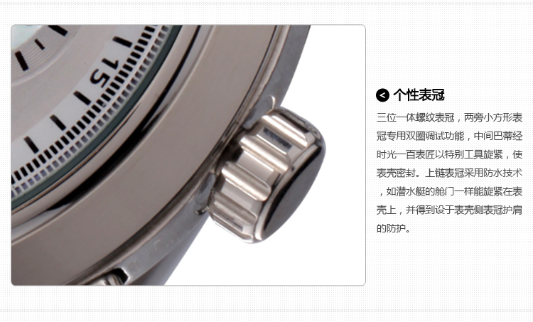 4.腕表把的平时应保持锁紧(琐式表冠)或完全推入(压式表冠)状态,使能确保防水功能。