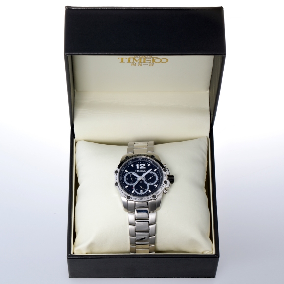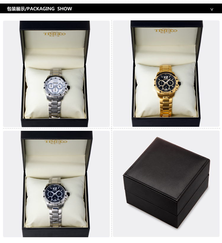 时光一百 时尚简约闪钻真皮石英男表W80097G