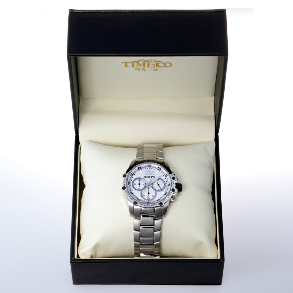 时光一百 时尚简约闪钻真皮石英男表W80097G