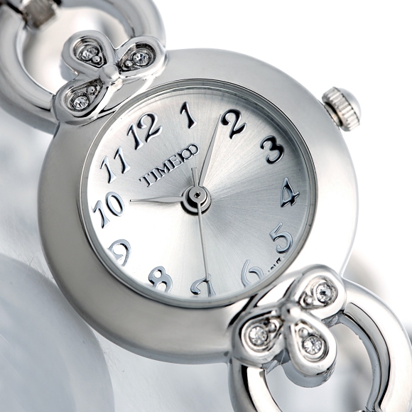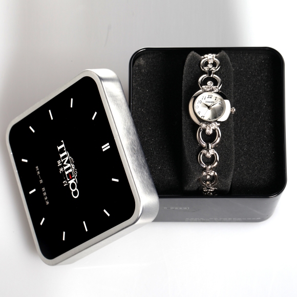 时光一百(TIME100)女表小表盘简约防水女士腕表套装女手链手表七夕礼物送女友W50888L钢色