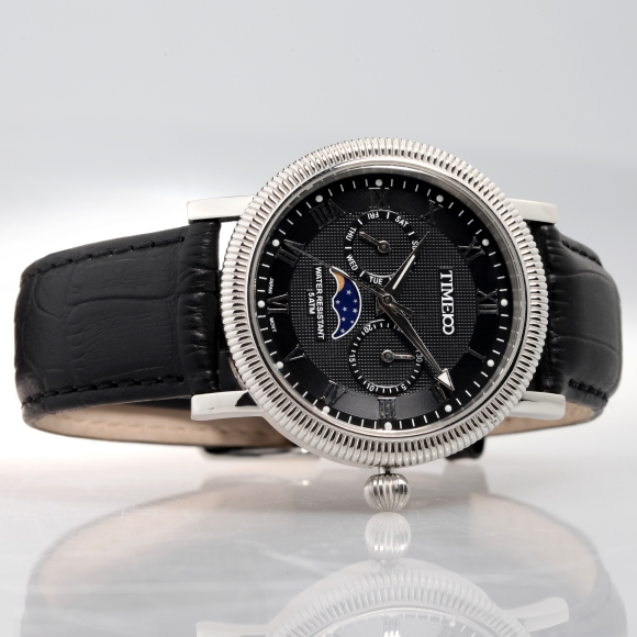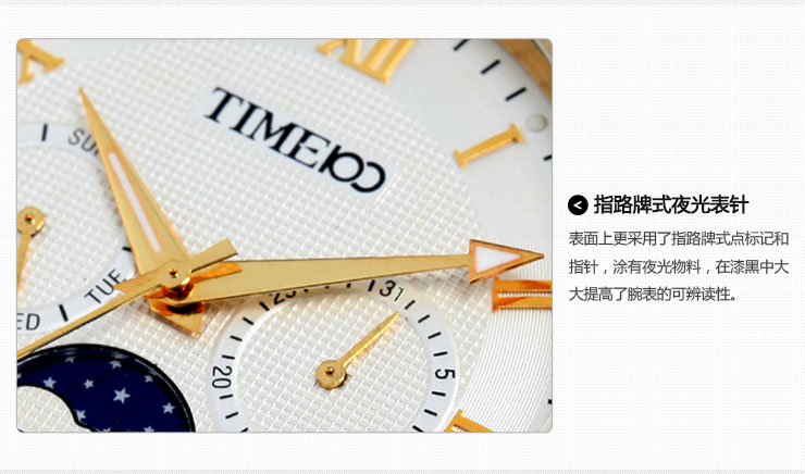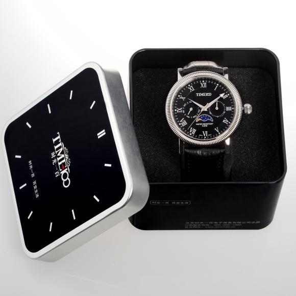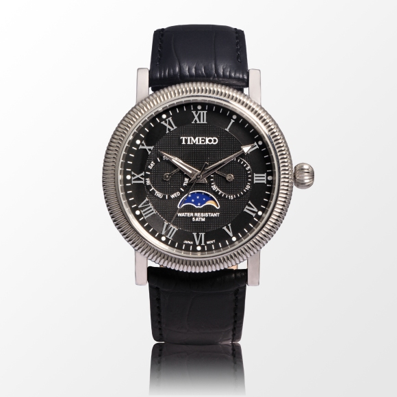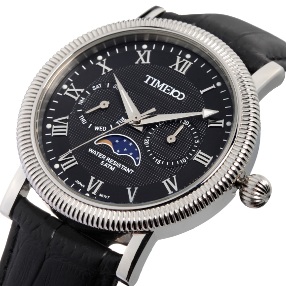 TIME100时光一百 古典罗马刻度多功能真皮石英男表W80060G