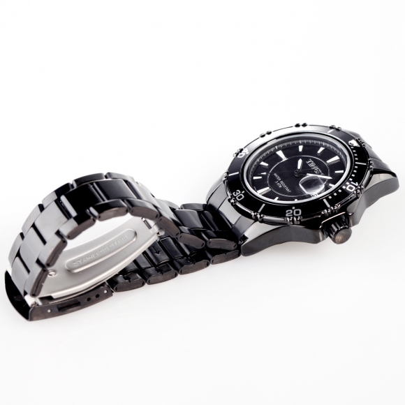 时光一百Smileyes系列 商务运动数字时标钢带石英男表TSW044G