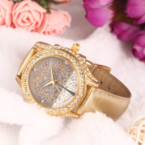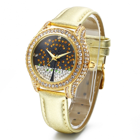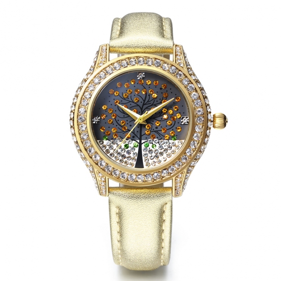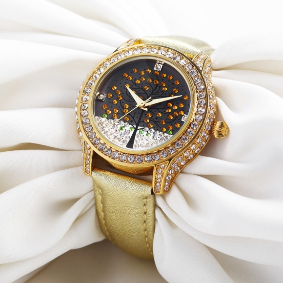 浪漫许愿树镶钻真皮女表 (全国包邮)