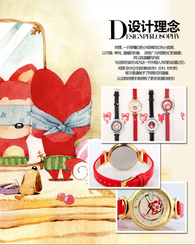 阿狸青春系列时尚亮光漆皮闪钻女表 (全国包邮)