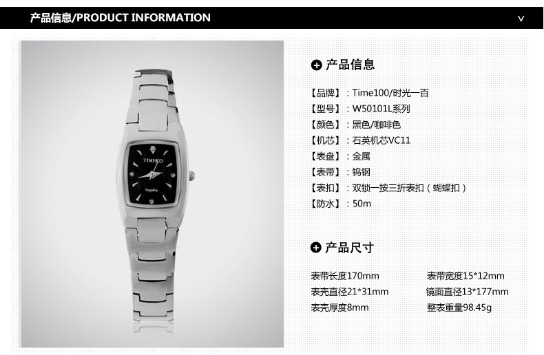 当前位置:首页 > 时尚方形正品钨钢女士手表防水石英表W50101L