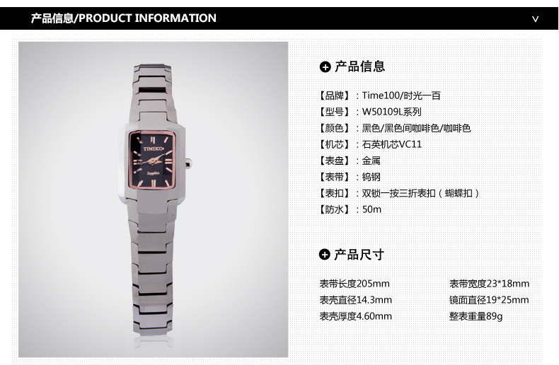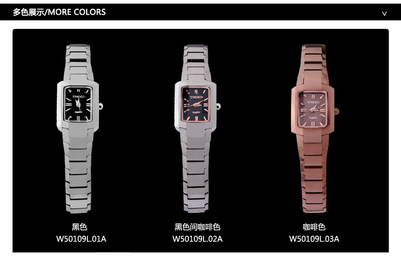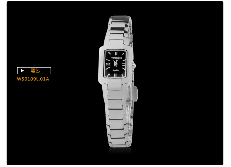 当前位置:首页 > 时尚方形正品钨钢女士手表防水石英表W50109L