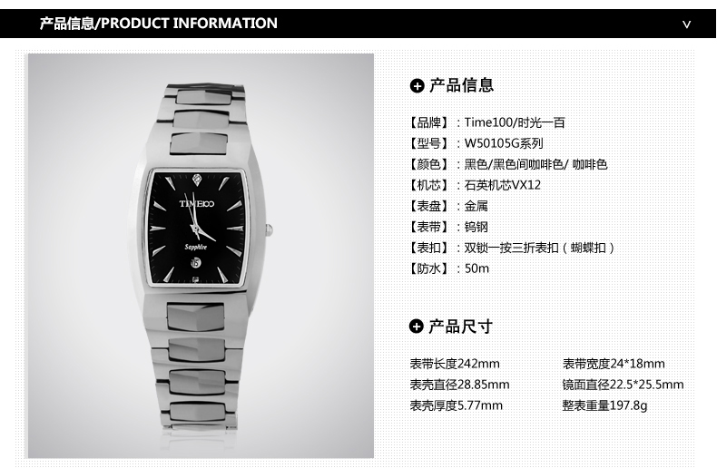 当前位置:首页 > 时尚方形正品钨钢男士手表防水石英表W50105G