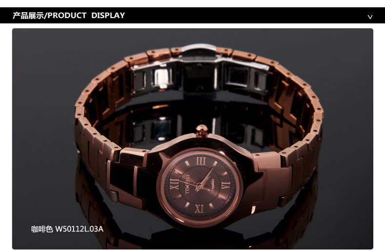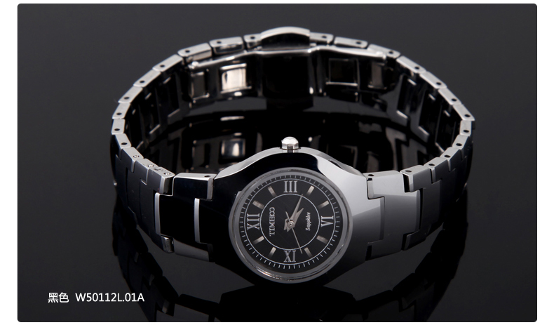 当前位置:首页 > 时尚圆形正品钨钢女士手表防水石英表W50112L