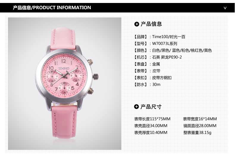 TIME100 时尚糖果色多功能真皮女表 全国包邮