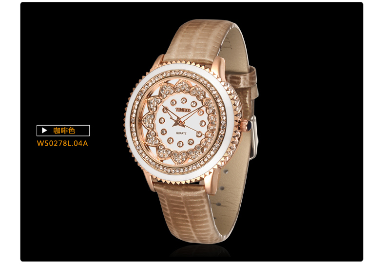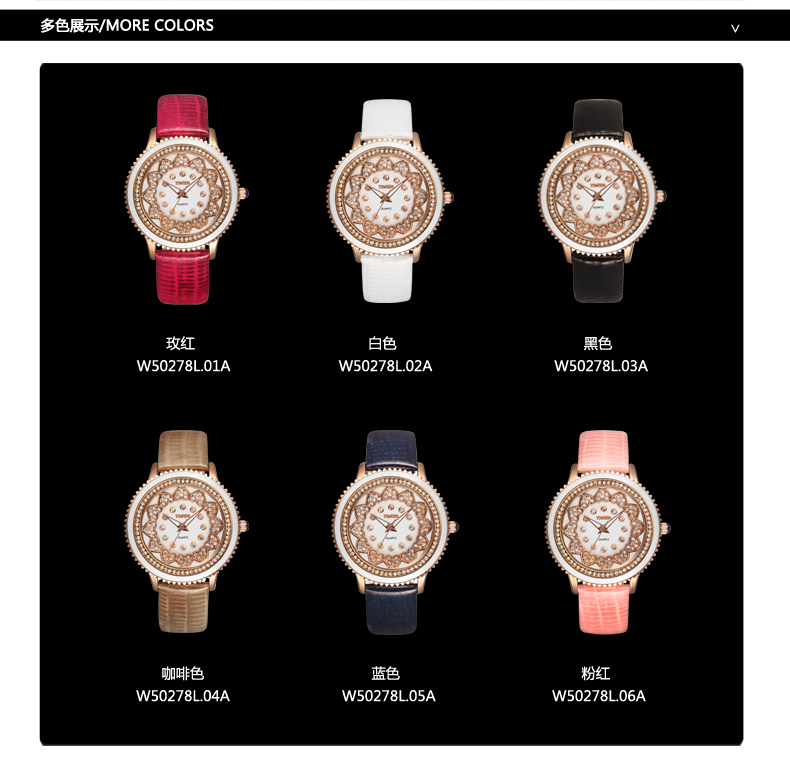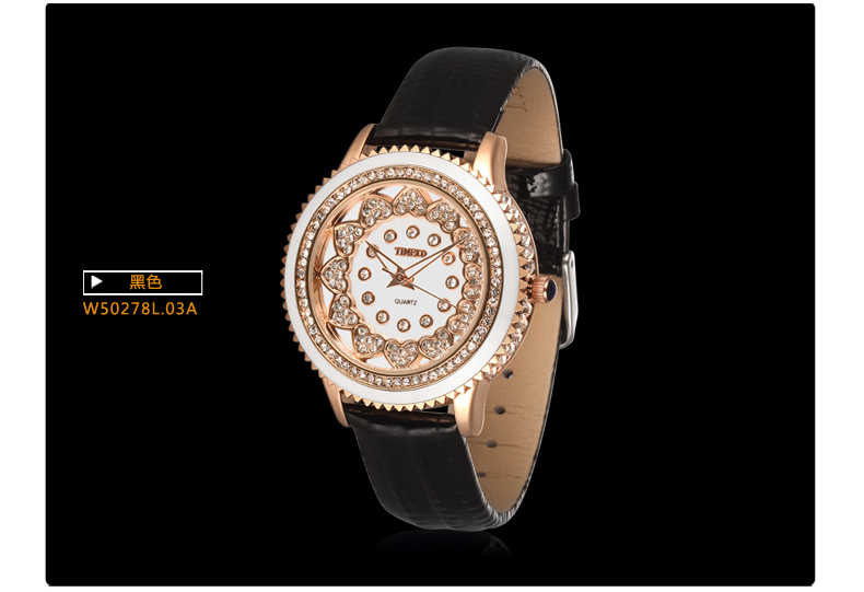 璀璨环形闪钻真皮石英女表W50278L 全国包邮