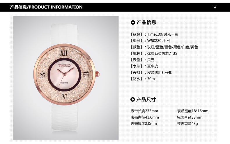 【售后服务】购买“时光一百/time100”品牌手表均可享受“7天包退 30天包换 1年保修”服务,请放心购买