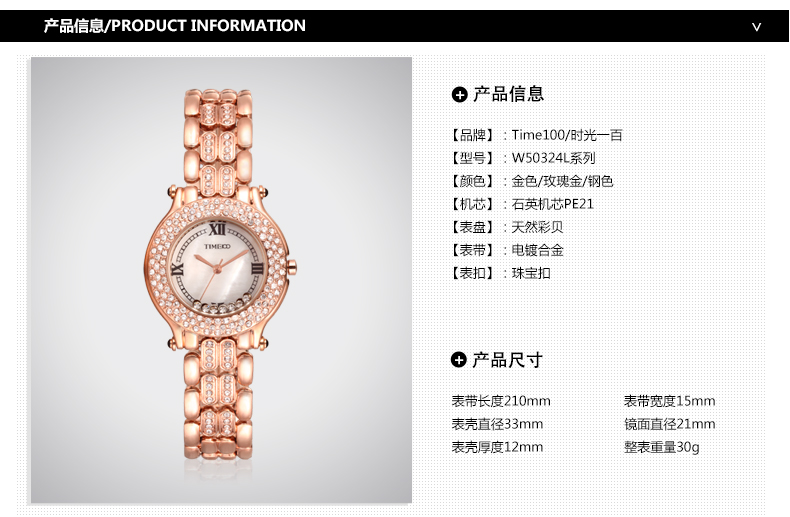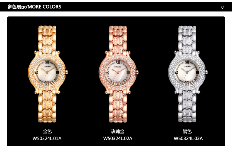 时尚椭圆形闪钻手链女表W50170L间玫瑰金
