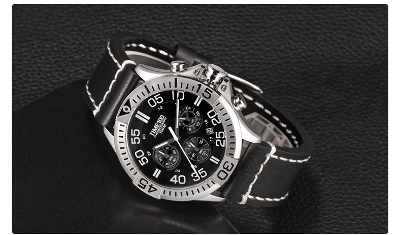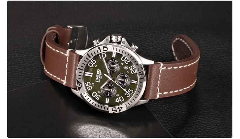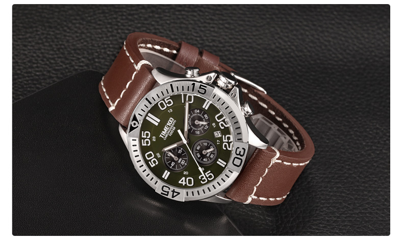 100米防水 时尚多功能真皮石英男表 (全国包邮)