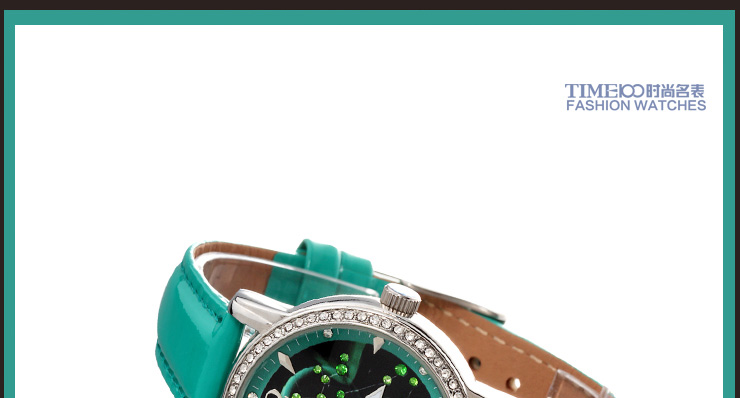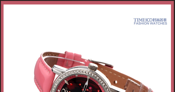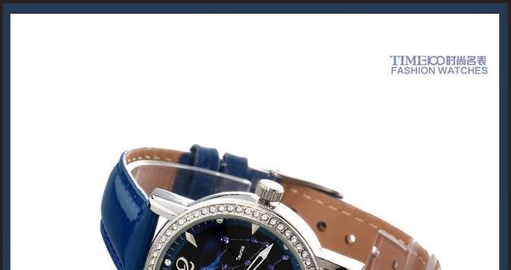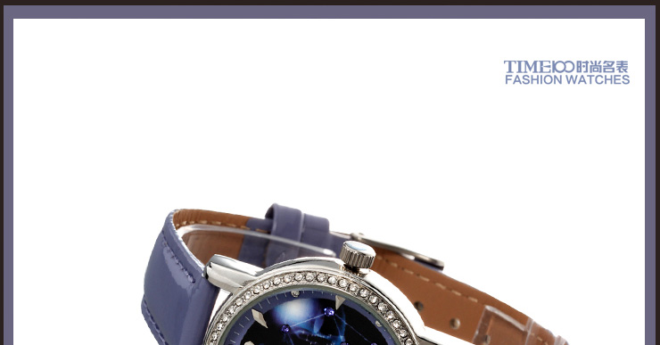 时光一百 时尚简约闪钻真皮石英男表W80097G