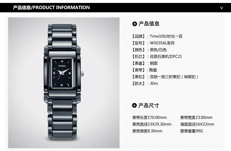 当前位置:首页 > 时尚流行优雅陶瓷方形女士腕表W50356L