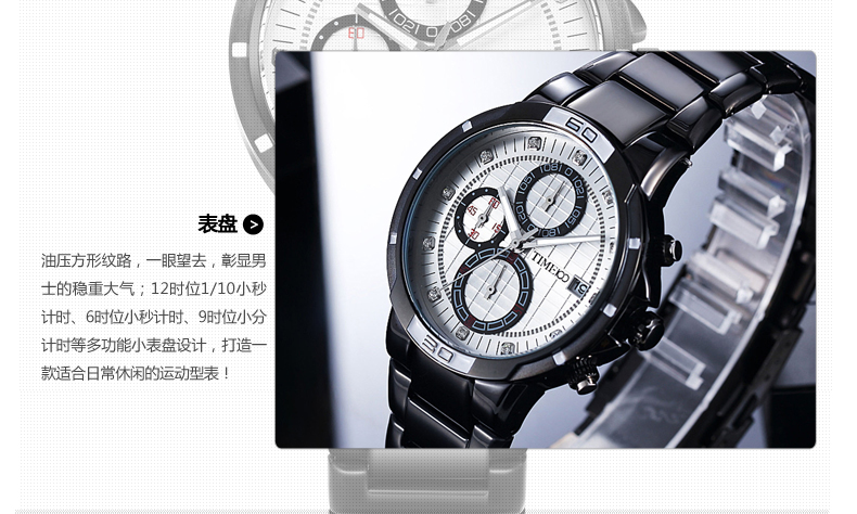 动感三眼小表盘休闲时尚男表 (全国包邮)