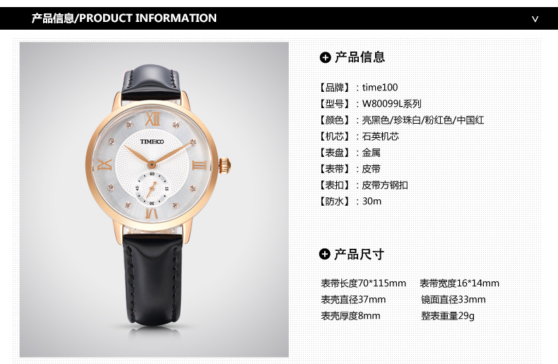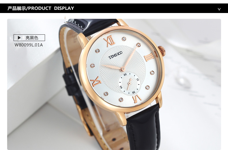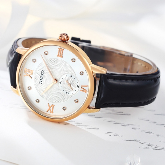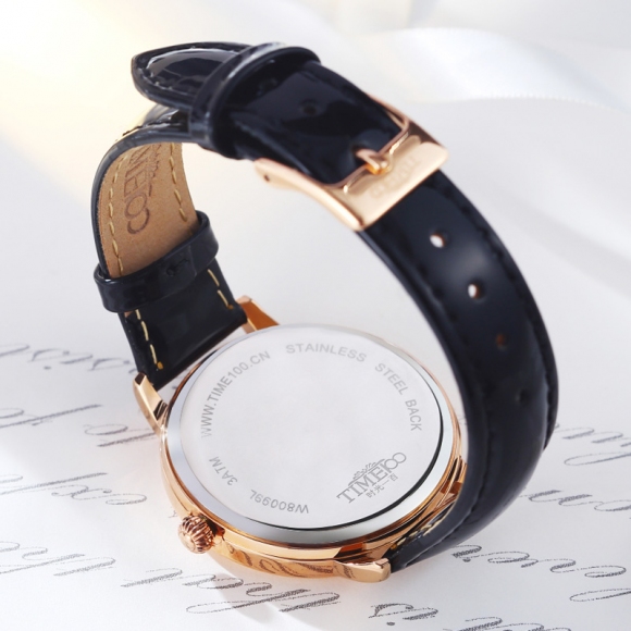 时光一百 时尚复古闪钻亮光真皮石英女表