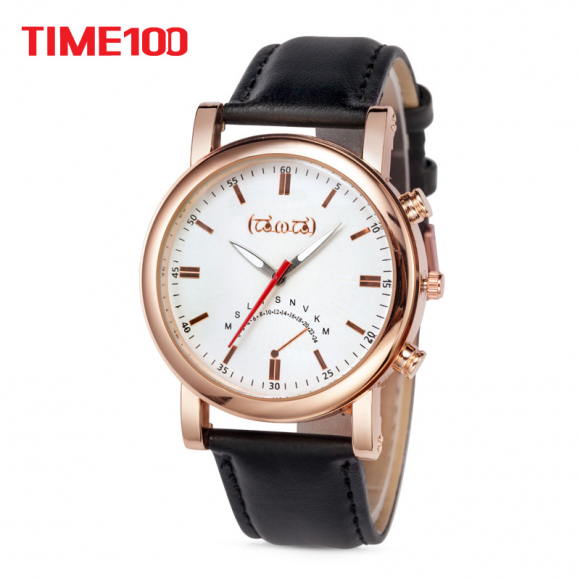 时光一百Smileyes系列 商务休闲条钉时标皮带石英男表