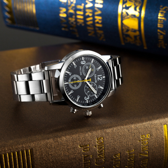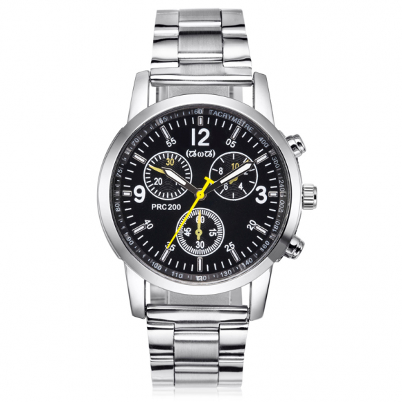 时光一百Smileyes系列 商务运动数字时标钢带石英男表