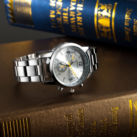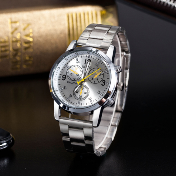 时光一百Smileyes系列 商务运动数字时标钢带石英男表