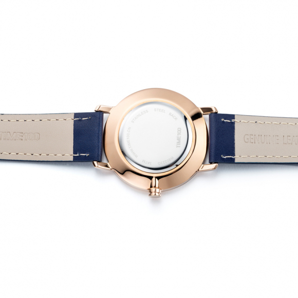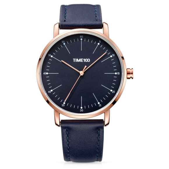 时光一百 简约刻度薄款皮带石英男表