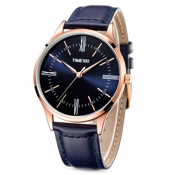 时光一百 罗马数字薄款皮带石英男表