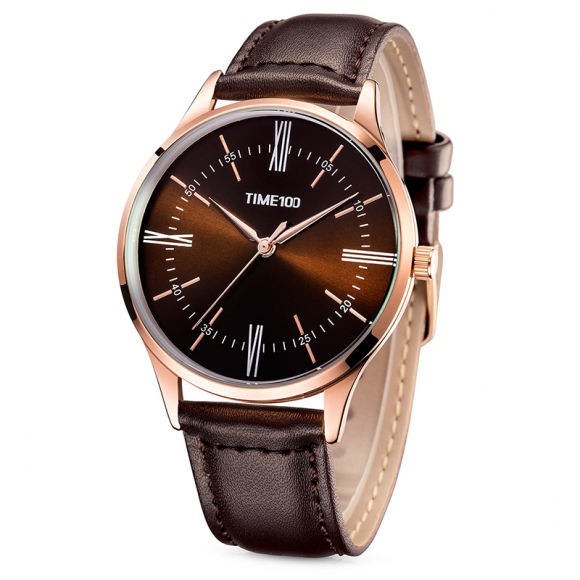 时光一百 罗马数字薄款皮带石英男表