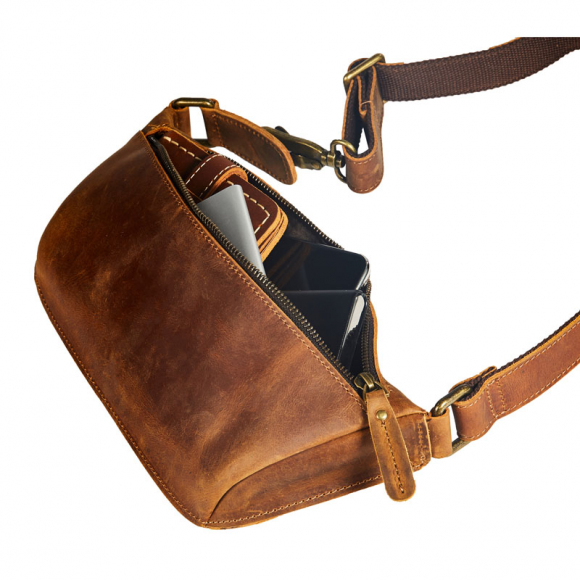 魔术传奇MagoMaga 简约复古疯马牛皮真皮腰包男包(小包)