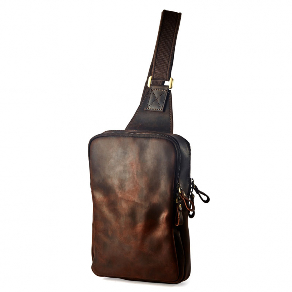 魔术传奇MagoMaga 复古真皮疯马牛皮胸包斜挎包男包(中包)