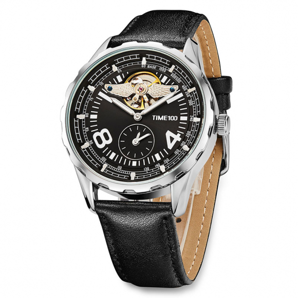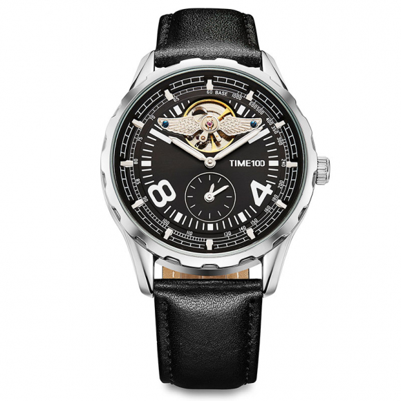 时光一百(TIME100)飞行师系列机械表天使翼商务飞轮手表多功能自动机械机芯防水男士手表