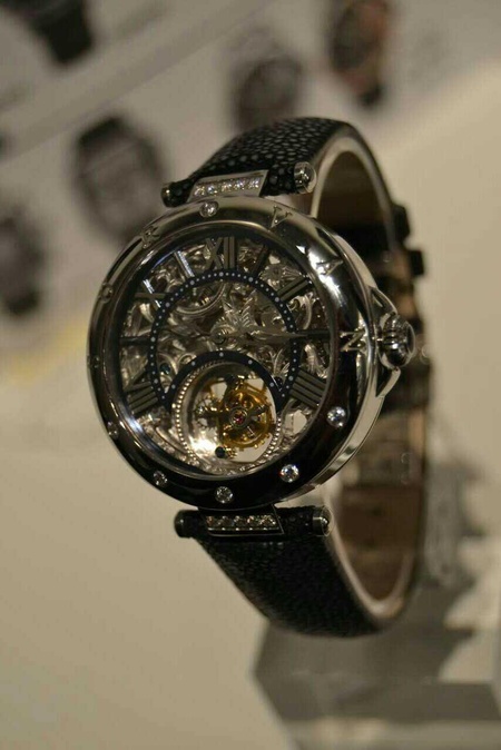 不同于Time100的快时尚定位,SURVAN为轻奢侈品牌,在瑞士诞生,专注于机械手表,镶嵌施华洛世奇水晶。中文名奢范即为瑞士奢华、机械风范之意。这次发布的SURVAN品牌共有48款,男女款式各占一半,每款均有2色以上选择,全部为自动上链机械手表,设计均有专利。最高端为陀飞轮机芯,独有的罗马字镂空雕花面原创设计,将陀飞轮华尔兹般的旋转完美呈现在你的眼前,蓝宝石镜防炫光的效果如空气般通透,触摸如美玉般冰清。女款更用天然魔鬼鱼皮表带,奢华而低调。SURVAN陀飞轮市场售价为7800瑞士法郎。